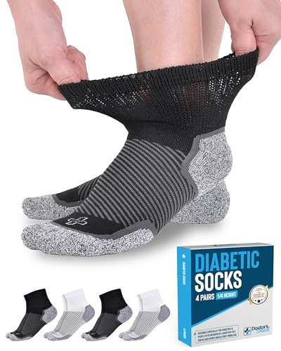 Doctor's Select Diabetiska strumpor för män och kvinnor - 4 par | 1/4 diabetesstrumpor kvinnor | Neuropatistrumpor för män, grå häl/tå 2 svart/2 vit, Large