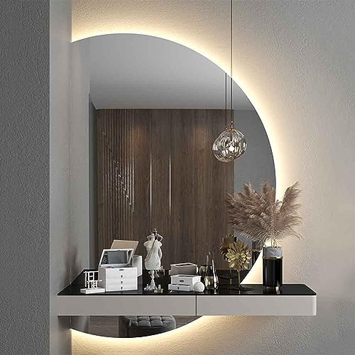 UkewEi anti-dimma LED kosmetisk spegel belyser helkroppsspegel med touch-brytare 70 x 100 cm halvrund dimbar väggspegel varm vit/kall vit/neutral (färg: Vänster skärning, storlek: 84 x 120 cm)