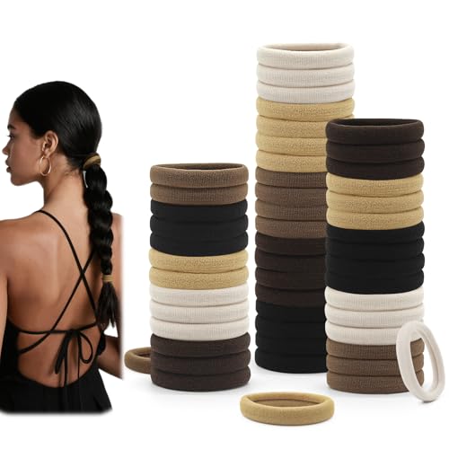 Dreamlover Hårsnoddar för Kvinnor, Sömlösa Hårsnoddar för Flickor, Hästsvanshållare för Tjockt Hår, Neutral Färg, 50 Stycken