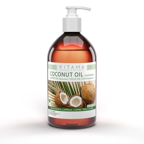 Fraktionerad kokosolja – neutral massageolja för wellness & spa | Vegetabilisk bärarolja för eteriska oljor | Vegan, luktfri, icke-fet, hud och hårvård (500 ml)