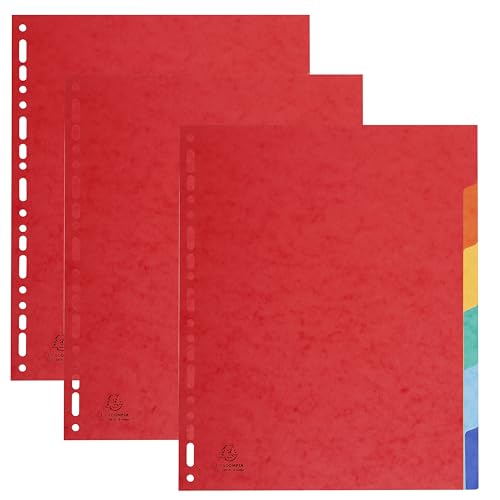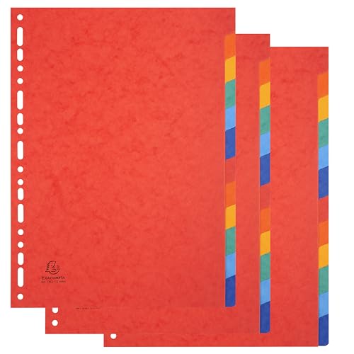 Exacompta - Ref. 1412SE - Förpackning med 3 uppsättningar avdelare i äkta glansigt, mjukt kartongpapper 225 g/m² FSC® med 12 neutrala flikar - för A4-ark - 22,5 x 29,7 cm - olika färger