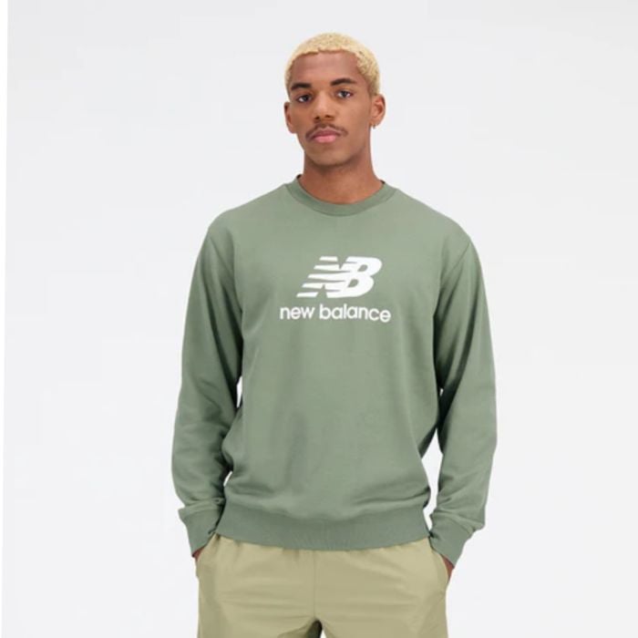 New Balance Essentials Stacked Logo Crew Sweatshirt - Bekväm grön tröja för löpning och fritidsaktiviteter - Handla nu på Loparshop.se!