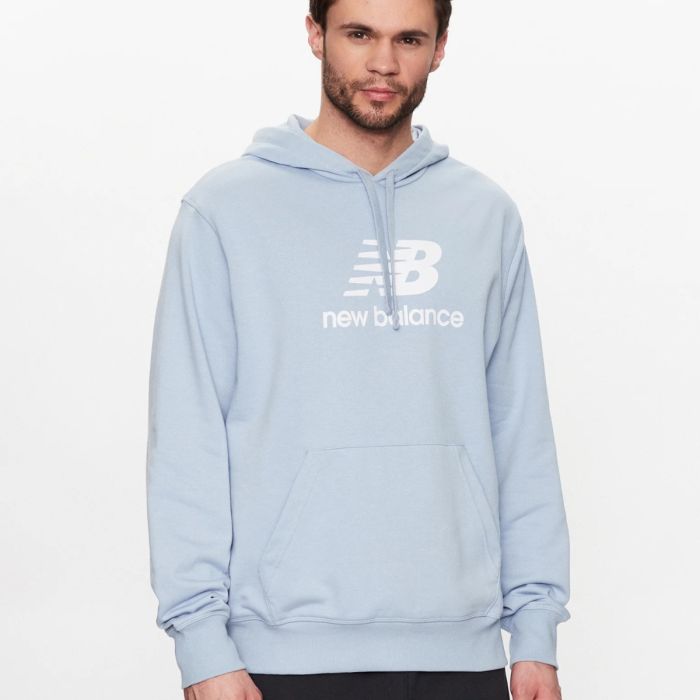 New Balance Essentials Stacked Logo Hoodie M Blue - Bekväm tröja för löpning och fritid - Handla nu på Loparshop.se!