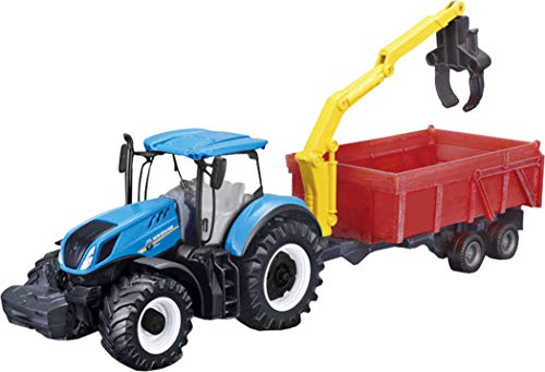 New Holland T7 Gå-Traktor med Trailer och verktyg, Blå
