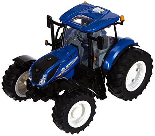 New Holland T7.300 Blue Power Tractor Replica, New Holland traktorkopia kompatibel med 1:32 skala lantbruksdjur och leksaker, lämplig för samlare och barn från 3 år