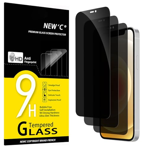 NEW'C 3 Pack, Privacy skärmskydd i glas för iPhone 12/12 Pro (6,1 tum), förbättrad 28-graders sekretessvinkel, ultrahållbar 9H hårdhet, bubbelfri