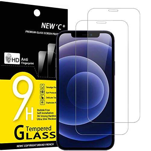 NEW'C 2 Pack, skärmskydd i glas för iPhone 12, iPhone 12 Pro (6,1 Tum), bubbelfri, 9H hårdhet, 0,33 mm ultratransparent, ultrabeständigt härdat glas