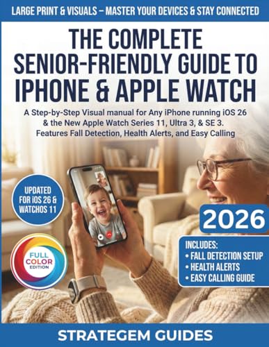 THE COMPLETE SENIOR-FRIENDLY GUIDE TO IPHONE & APPLE WATCH: Step-by-Step Visual manual for iPhones with iOS 26 & New Apple Watch Series 11, Ultra 3 & SE 3. Fall Detection, Health Alerts, Easy Calling