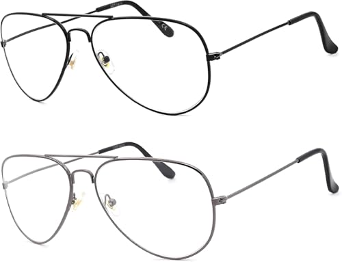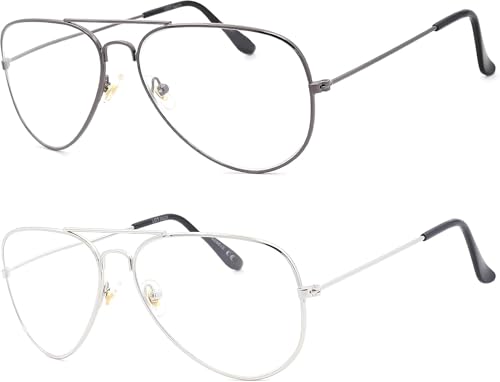 NEW VISION 2 Pack läsglasögon herr retro pilotglasögon UV400 läsglasögon för män kvinnor NV8132 (grå + silver, 1,5, diopter)