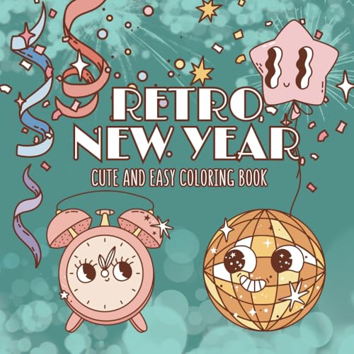 Retro New Year: Cute and Easy Coloring Book: Simple and Big Designs for Relaxation