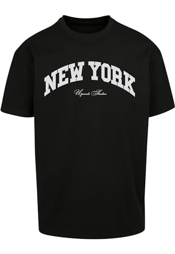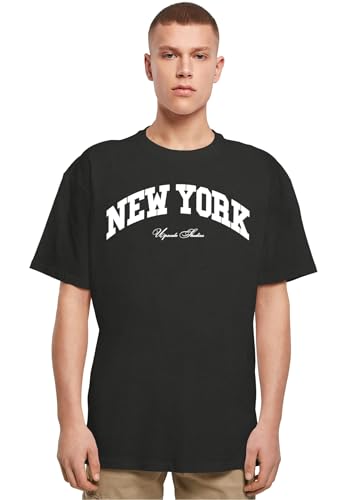 Mister Tee Upscale herr-t-shirt New York College oversize t-shirt, tryck t-shirt för män, överdimensionerad passform, streetwear, svart, XXL