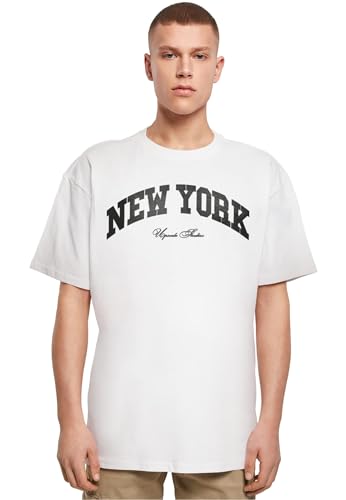 Mister Tee Upscale herr-t-shirt New York College oversize t-shirt, tryck t-shirt för män, överdimensionerad passform, streetwear, Vit, 4XL