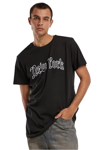 Mister Tee herr-t-shirt, New York Wording, t-shirt, t-shirt med bokstäver, grafiskt tryck, streetwear, svart, XS