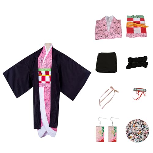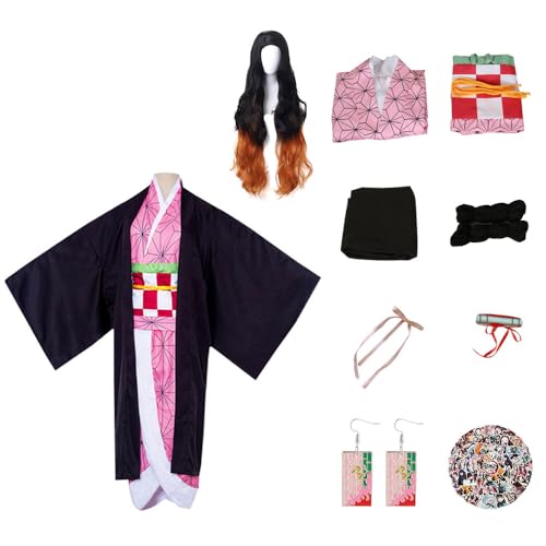 JYakeji 11 st kimetsu kostym no Yaiba Nezuko Kamado Cosplay Peruk kimono Kostym Lämplig för Cosplay (XL)