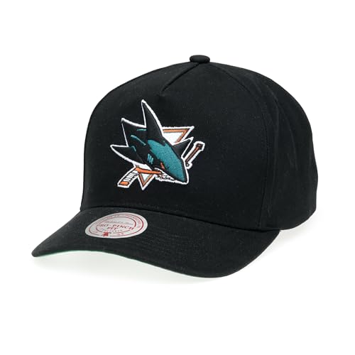 Mitchell & Ness NHL Nostalgic 2.0 Pro Crown Snapback Cap – 100 % bomull, justerbar, män, kvinnor, barn, unisex, vår, sommar, höst, vinter, SAN JOSE SHARKS, one size