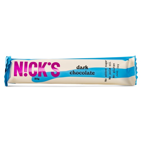 NICKS Mörk choklad keto bars utan tillsatt socker, lågkolhydratsgodis, glutenfri vegan snackbar (15 Dark chocolate x 25g)