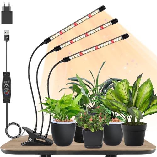 3Köpfe Pflanzenlampe LED, Pflanzenlicht Vollspektrum, Pflanzenleuchte mit Zeitschaltuhr, 3 Farbmodi und 10 Stufen Dimmbar, Wachstumslampe für Innenpflanzen, Zimmerpflanzen