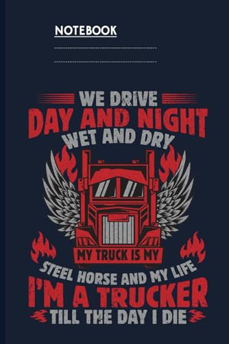 We Drive Day And Night Wet And Dry My Truck Is My Steel Horse And My Life I'm A Trucker Till The Day I Die With Red Truck And Winged Flames On Dark Blue Cover: Notebook