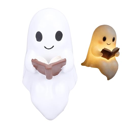 Masyrt Söt Ghost Reading Book Lamp, LED Night Lamp Cute Ghost Reading Book Light Statue, New Halloween Light Up Ghosts Statue Night Lights For Bookhelf Pise Pise Windows Bill Decoration