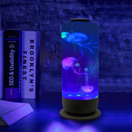 Asixxsix Maneter Lampa, 7 Färginställning LED Fantasy Jellyfish Lamp Mood Lighting, 3 Vattenflödeshastigheter Jellyfish Night Light Decoration för Hemmakontorets Sovrumsdekor (Black)