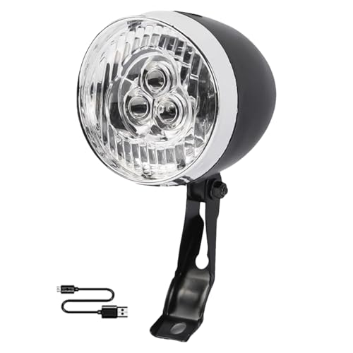 Bikes Fronts Light, Road Front Lamps, Retro Classic 3 Led Headlight, Adorable Rechargeable Bike Lighting Equipment, Night Riding, Bright Front Lamp for Mountain, Black, Silver