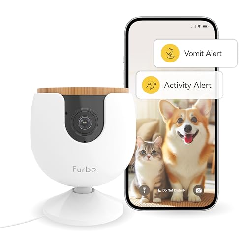 Furbo 360° Cat Camera - [NEW] Rotating 360° View Wide-Angle Cat Treat Dispenser with Camera, Feather Wand Toy, Color Night Vision, 1080p HD Pan, 2-Way Audio, MEOWING Alerts, WiFi