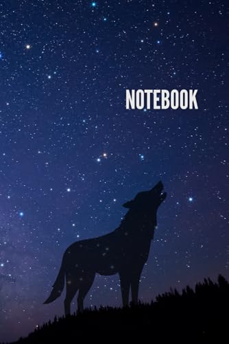 Notebook 6"x9" and 120 Lined Paper: Wolf Starry Night Howling Moon Funny Gifts For Men Women Kid