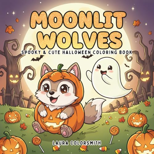 Moonlit Wolves – Spooky & Cute Halloween Coloring Book: A Fun and Relaxing Halloween Coloring Book Featuring Cute Chibi Wolf, and Spooky Night Scenes for Kids, Teens, and Adults