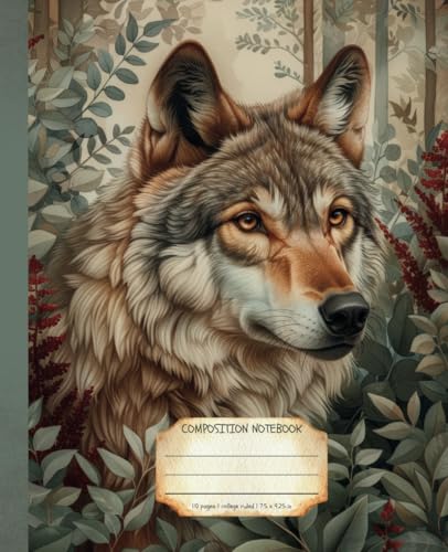 Composition Notebook: Premium College Ruled Wolf Notebook | Woodland Dark Night Illustration | Gift for Nature Lover | Daily School University and Work Journal