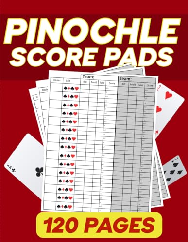 Pinochle Score Pads: Large Print Pinochle Score Sheets with 120 Games – 8.5 x 11 Inches, for Easy and Enjoyable Pinochle Game Nights with Family