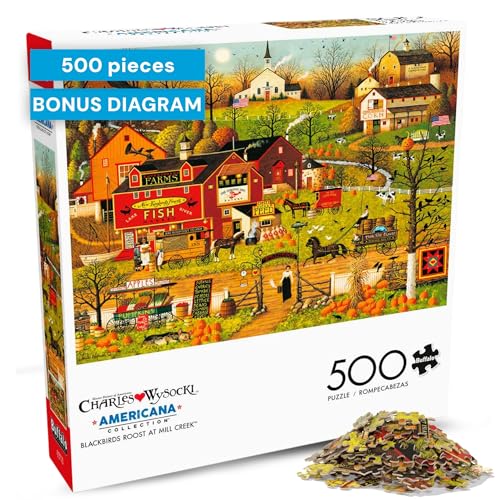 Buffalo Games - Charles Wysocki - Blackbirds Roost at Mill Creek - 500 Piece Jigsaw Puzzle for Adults -Challenging Puzzle Perfect for Game Nights - Finished Size is 21.25 x 15.00