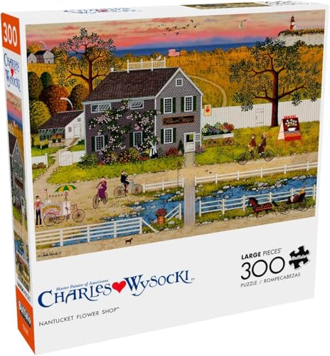 Buffalo Games - Charles Wysocki - Nantucket Flower Shop - 300 Piece Jigsaw Puzzle for Adults -Challenging Puzzle Perfect for Game Nights - Finished Size is 21.25 x 15.00