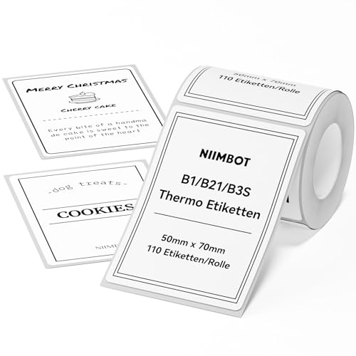 NIIMBOT Termiska etiketter självhäftande, B1/B21/B3S etiketttejp, papper för skola, hem, kontor, små företag (vit rektangel – 50 x 70 mm)