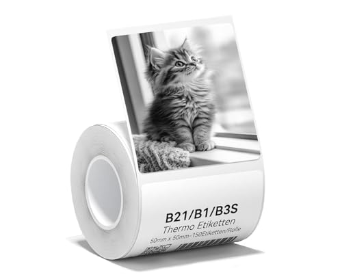NIIMBOT B1 B21 B3S termisk etikett 50 x 50 mm (2 x 2 tum) för mat, burk, adress, kläder, småföretag, 150 st per rulle