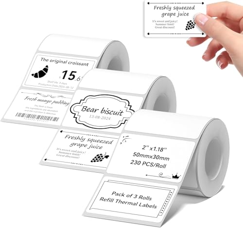 NIIMBOT Etiketter kompatibla med B1/B21/B3S etikettskrivare, 3 rullar 50 x 30 mm termoetikettband för stormarknader, detaljhandel, kontor, 230 etiketter/rulle, vit