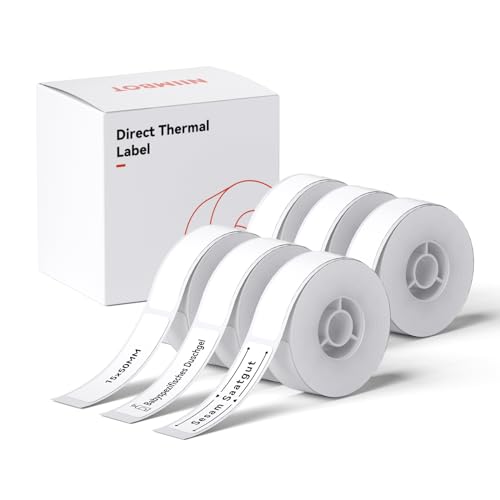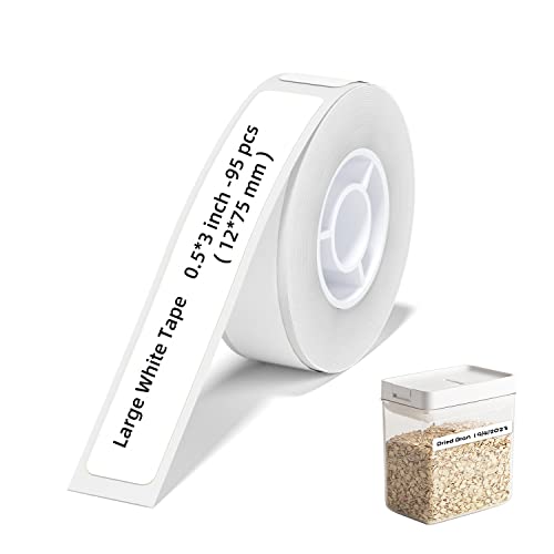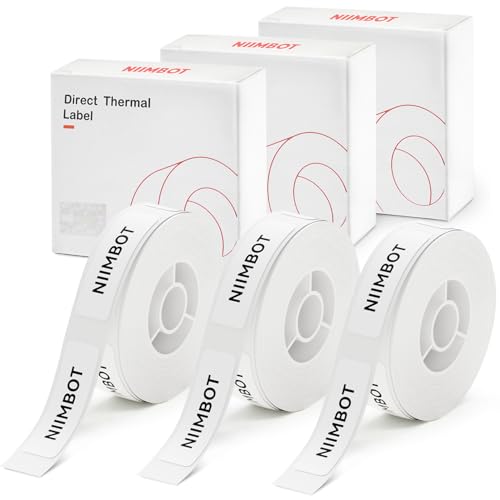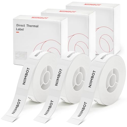 NIIMBOT Etikettband av modell D11/D110/D101-skrivare, (3 rullar, 0,47 tum x 1,57 tum/12 × 40 mm) anpassat etikettutskriftspapper, kontors- och hemmärkningstejp ersättning (vit)