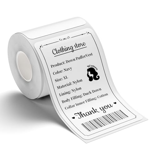 NIIMBOT-etikett för B1 B21 B3S, vattentätt klistermärke 50 x 80 mm (2 x 3,15 tum) för klädetiketter, burketiketter, streckkod, småföretag, 95 st per rulle, vit