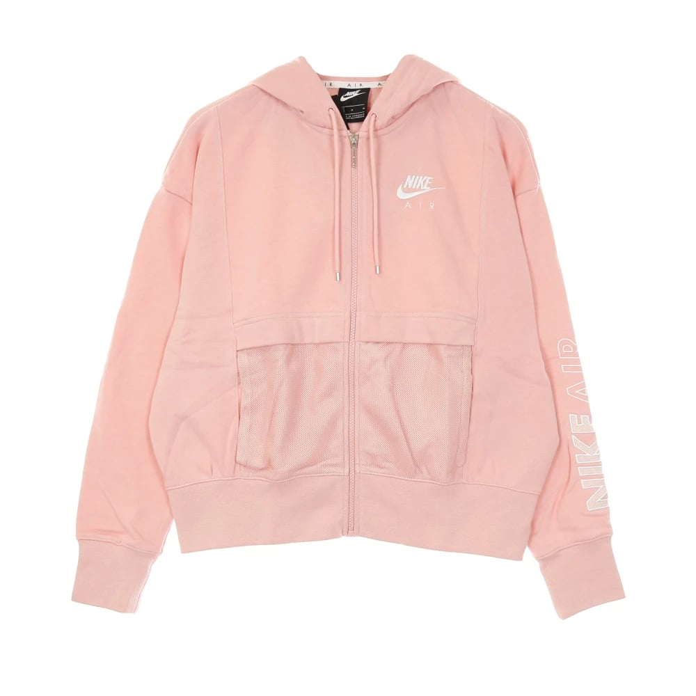 Nike, Sweatshirts & Hoodies , Dam, L, Läder, Rosa Glasyr/Vit Dragkedja Hoodie Sportkläder Air Top Fleece