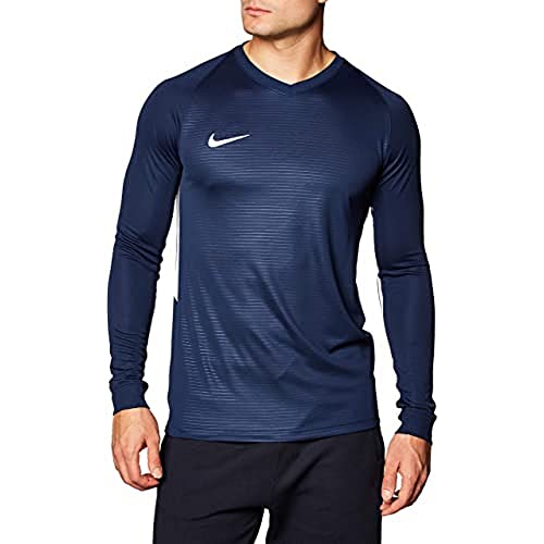 Nike herr Dry Tiempo premier fotbollströja långärmad t-shirt Blau (Marine Blau/Weiß/410) Small