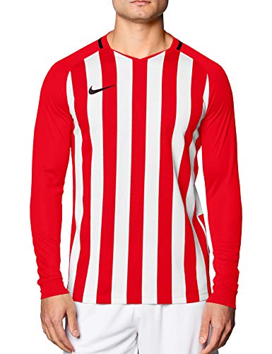Nike herr randig division III fotbollströja långärmad t-shirt Rot/Weiß/Schwarz X-L