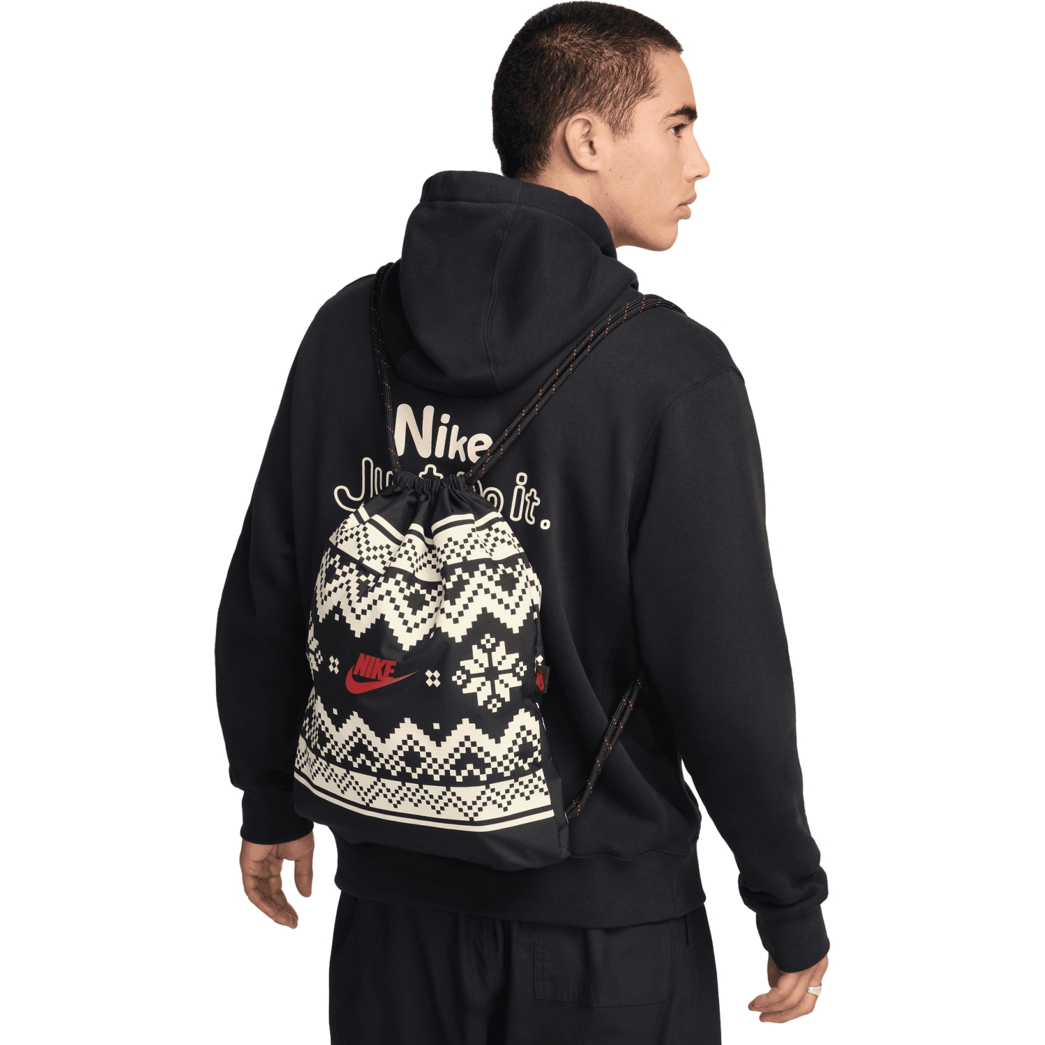 Nike Golf Heritage Fair Isle-väska med dragsko, svart/beige