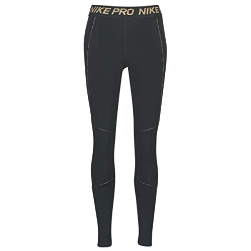 Nike Kvinnor W Nk Top Ls Glam mellanlager Långärmad T-shirt Black/Metallic Gold L