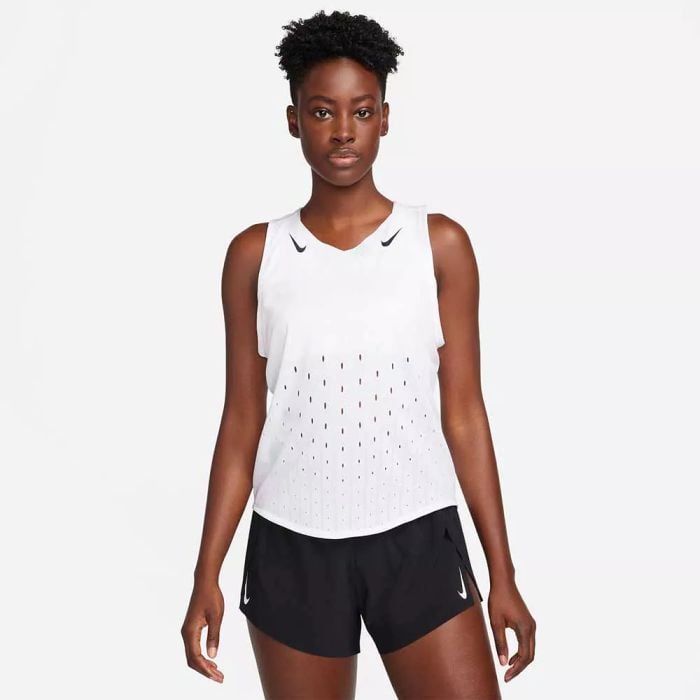 Nike Dri-FIT Advanced Aeroswift Singlet för Damer - Lättvikts Löpartröja i Vitt/Svart - Handla nu på Loparshop.se!
