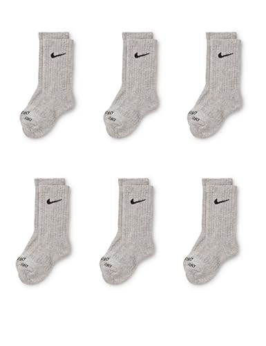 Nike Little Boy's 6-Pairs Young Athletes Grå Crew Socks Sz: 5-7 Passar 10C-3Y