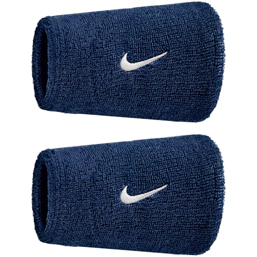 Nike Swoosh Classic Doublewide handledsband 2-pack svettband tennis fitness löpning handledsband breda, college marin/vit, en storlek