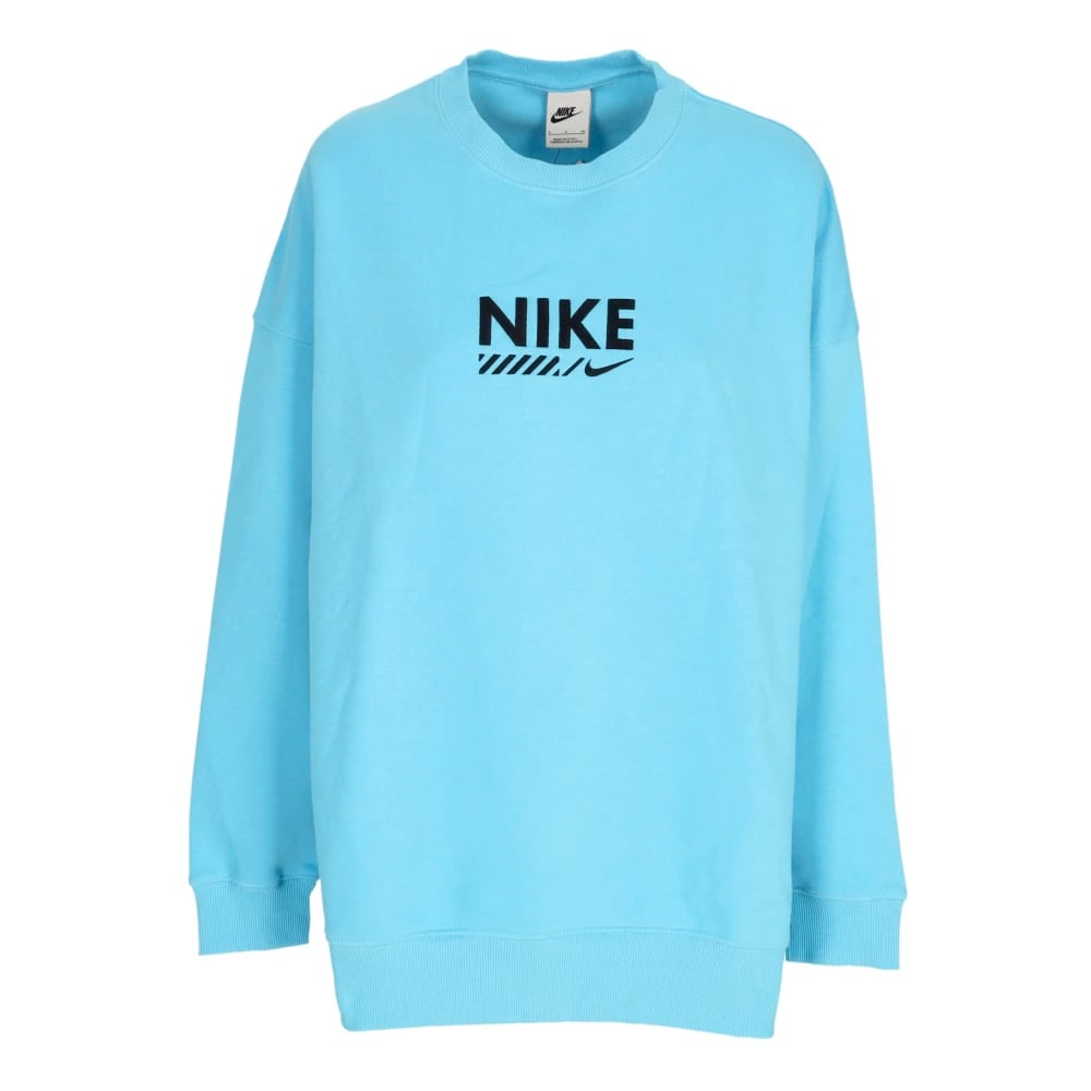 Nike, Sweatshirts & Hoodies , Dam, M, Bomull, Blå Crewneck Fleece Sweatshirt Oversize Fit
