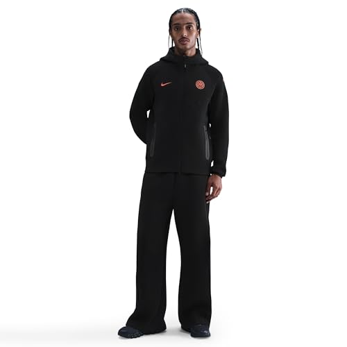 Inter Milano Tech Windrunner Nike Total 90 fotboll fleece huvtröja för män, svart/säkerhet orange, HV9961-010, 2XL