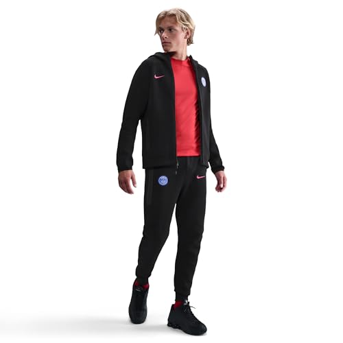 Paris Saint-Germain Tech Windrunner Third Nike Total 90 fotboll fleece huvtröja med genomgående dragkedja för kvinnor, svart/global röd, HQ3886-010, S