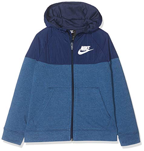 Nike Boys B NSW HOODIE FZ AV sweatshirt, midnatt marinblå/vit, L