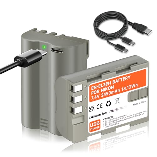 Mspalocell EN-EL3E USB-C 2450mAh ersättningsbatteri för Nikon D300 D300s D90 D80 D70 D70s D200 D100 D30 D50 D50S EN-EL3e EN EL3e ENEL3e, 2 stycken batteri